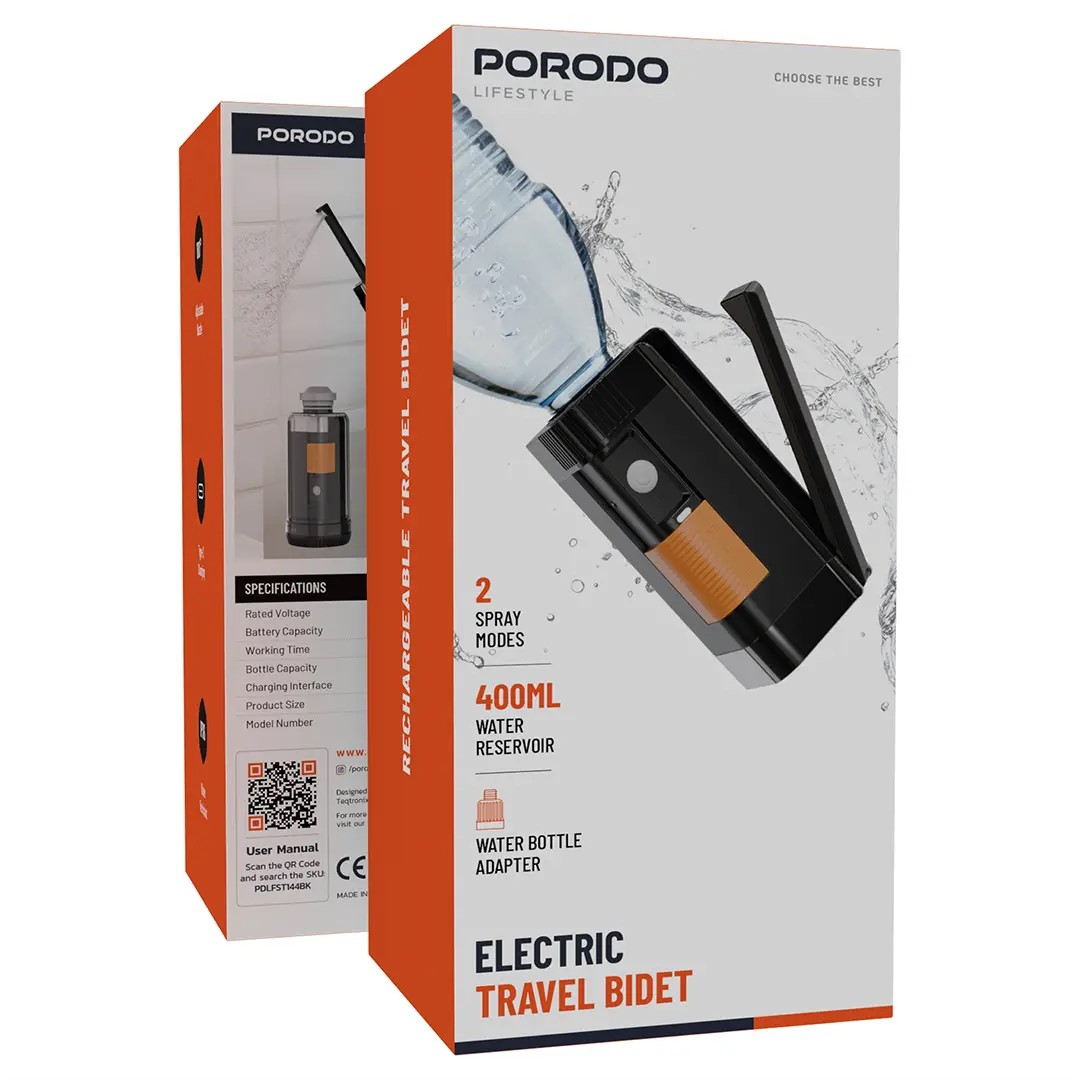 همین حالا «Porodo Lifestyle Electric Travel Bidet» را سفارش دهید؛ با شارژ Type-C، کارکرد طولانی و مقاومت IPX6، نگرانی از نظافت در سفر و خانه تمام میشود.