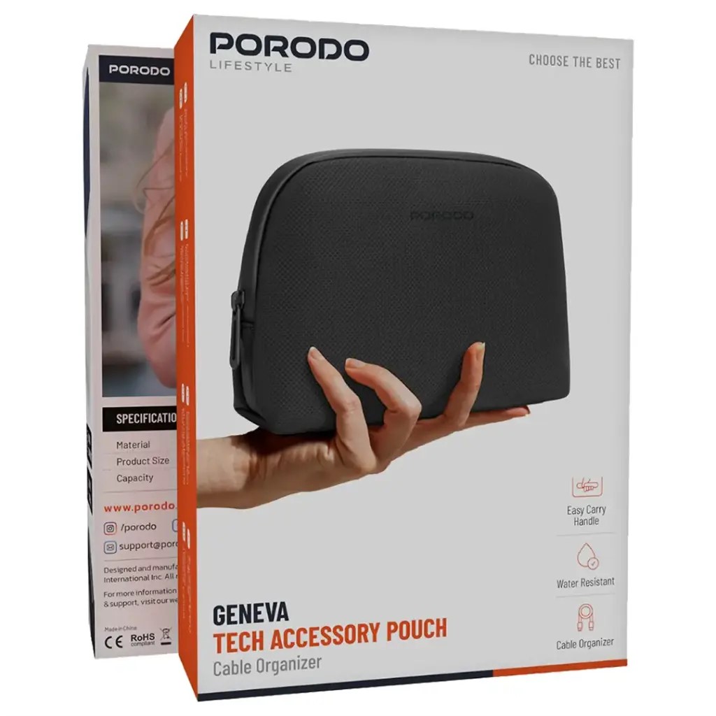 کیف لوازم جانبی تکنولوژی Porodo Lifestyle Geneva کاربردی و شیک، بهترین راهکار برای حفظ نظم و امنیت لوازم دیجیتال شما در هر شرایطی است. از کابلها گرفته تا شارژر و پاوربانک، همه را بدون دردسر حمل و نگهداری کنید و در هر مکان از دسترسی سریع و آسان لذت ببرید.